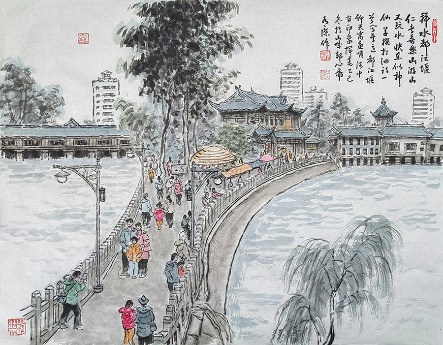 问道都江堰 拳拳爱国情 观陈有杰“都江堰 乐山大佛游写生画展”有感 文/著名评论家 阿林